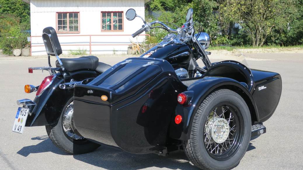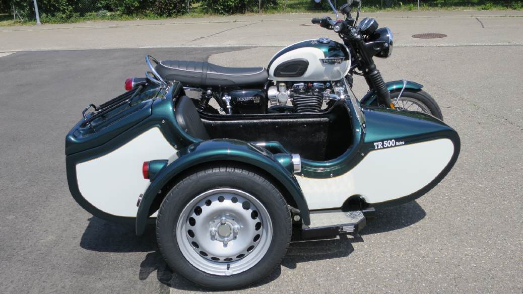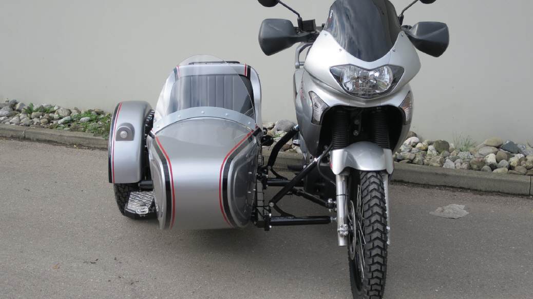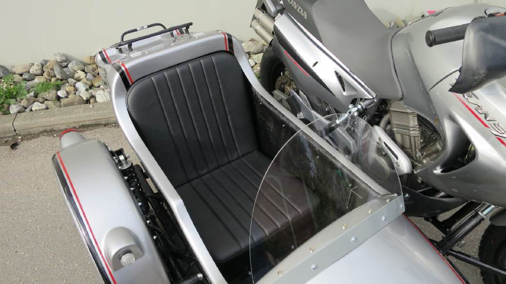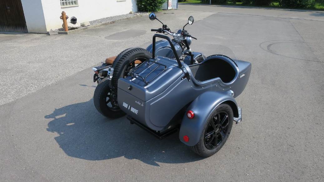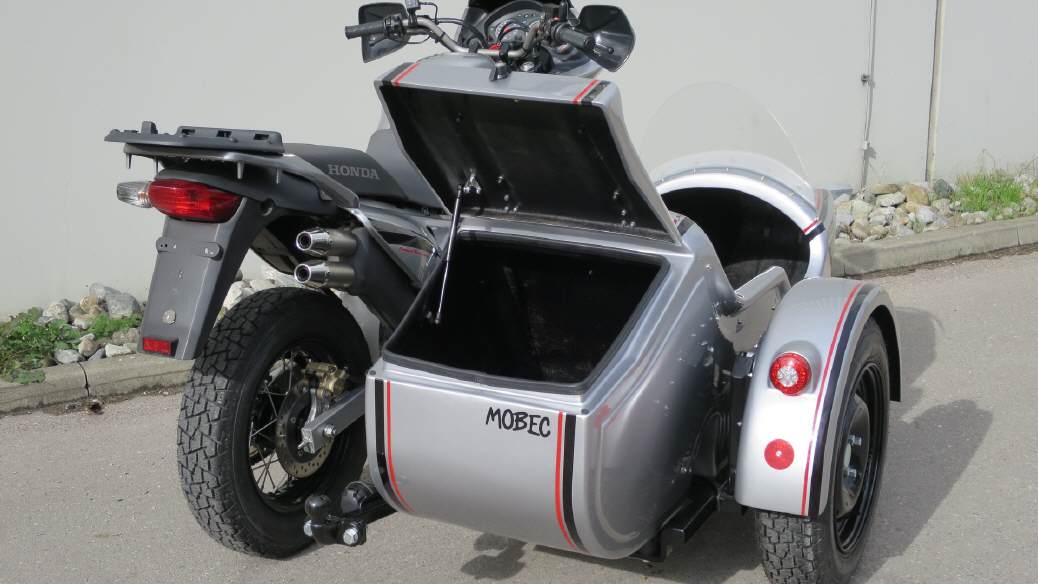 1-Sitzer Seitenwagen, 51 cm Sitzbreite, Bequemer Sitz mit Staufach, Spritzdecke, Kofferraumdeckel abschließbar, Seitenwagenkotflügel mit Beleuchtung, Mobec Beiwagenrahmen mit gezogener Federbeinschwinge, 4-Loch Anschlußplatten, PKW-Radlagereinheit wartungsfrei, Trittplatte - Riffelblech, Bilstein Gasdruck-Federbein, Scheibenbremsanlage mit Brembo Bremszange, 5.0 x 15" Stahlrad mit Bereifung 165/65 R 15 Bootskörper GFK, unlackiert, Karosserie vormontiert