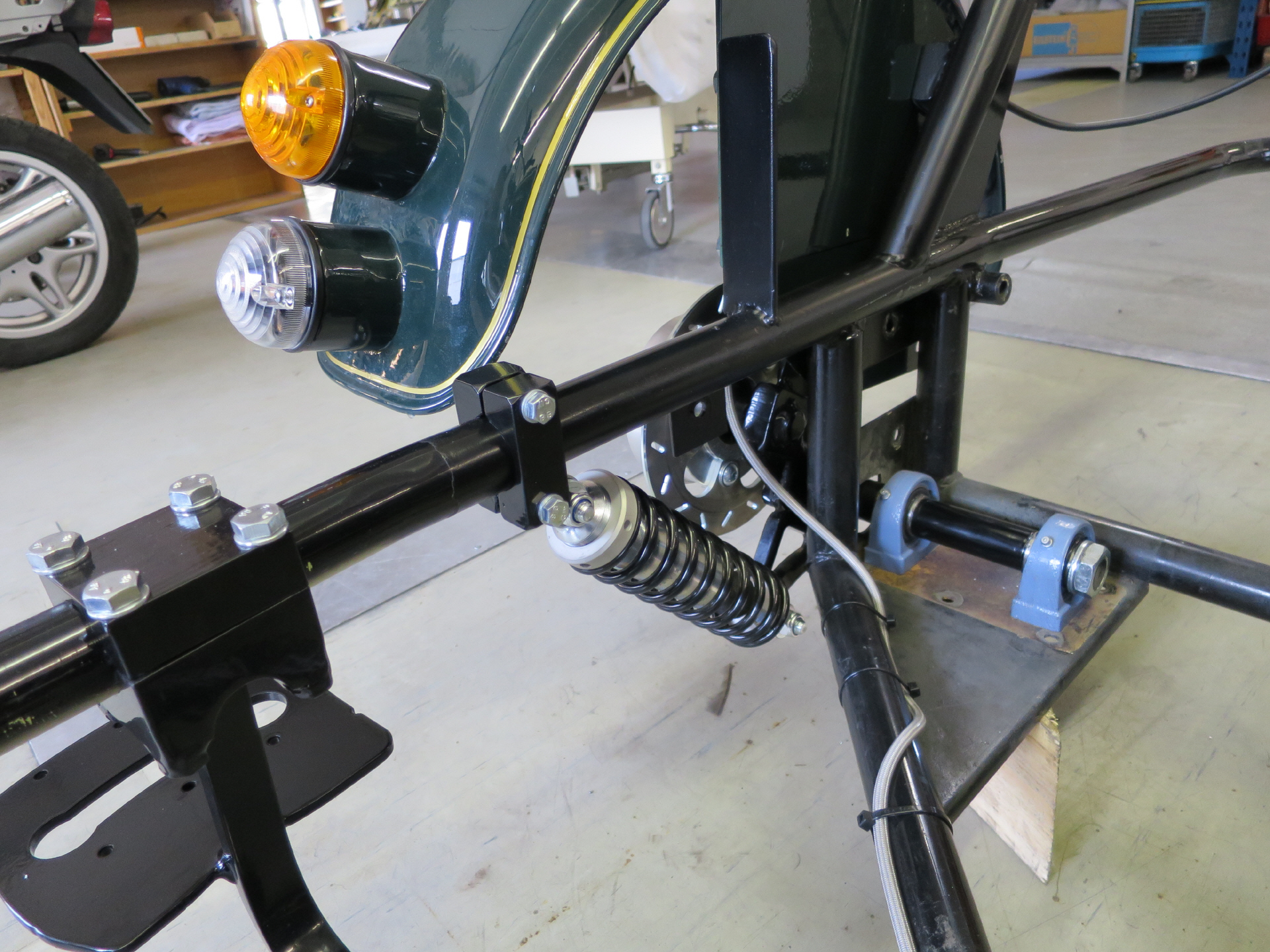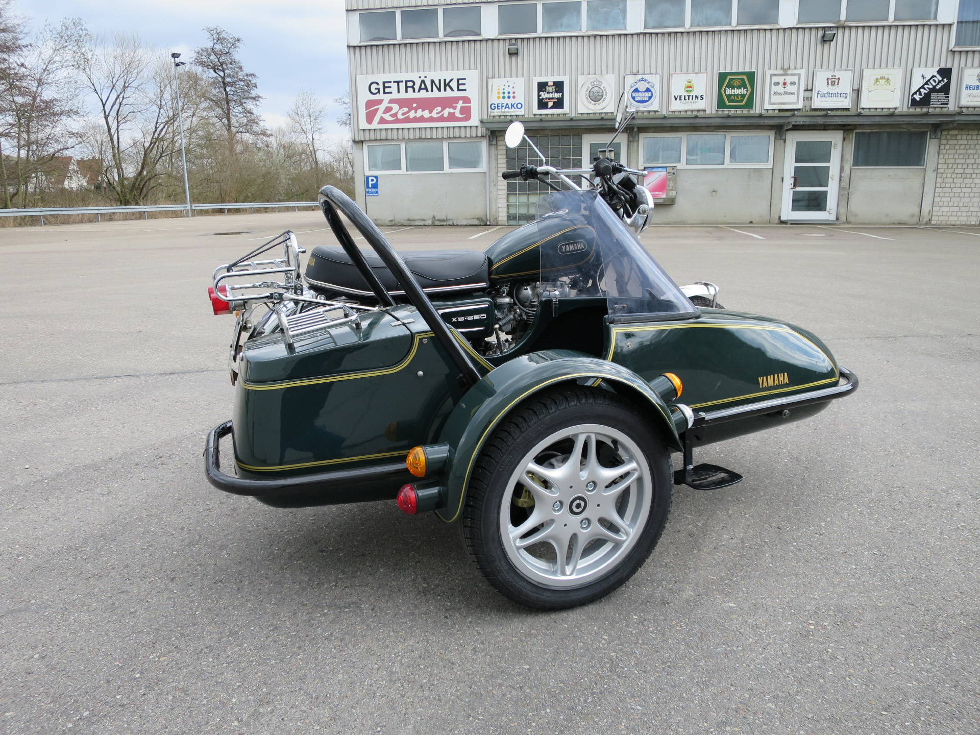 Squire ST/RS-Beiwagen Umbau auf BILSTEIN-Federbein, Scheibenbremse und wartungsfreier Schwingenlagerung EML-Verbundradreparatur Yamaha TRX 850-Gespann